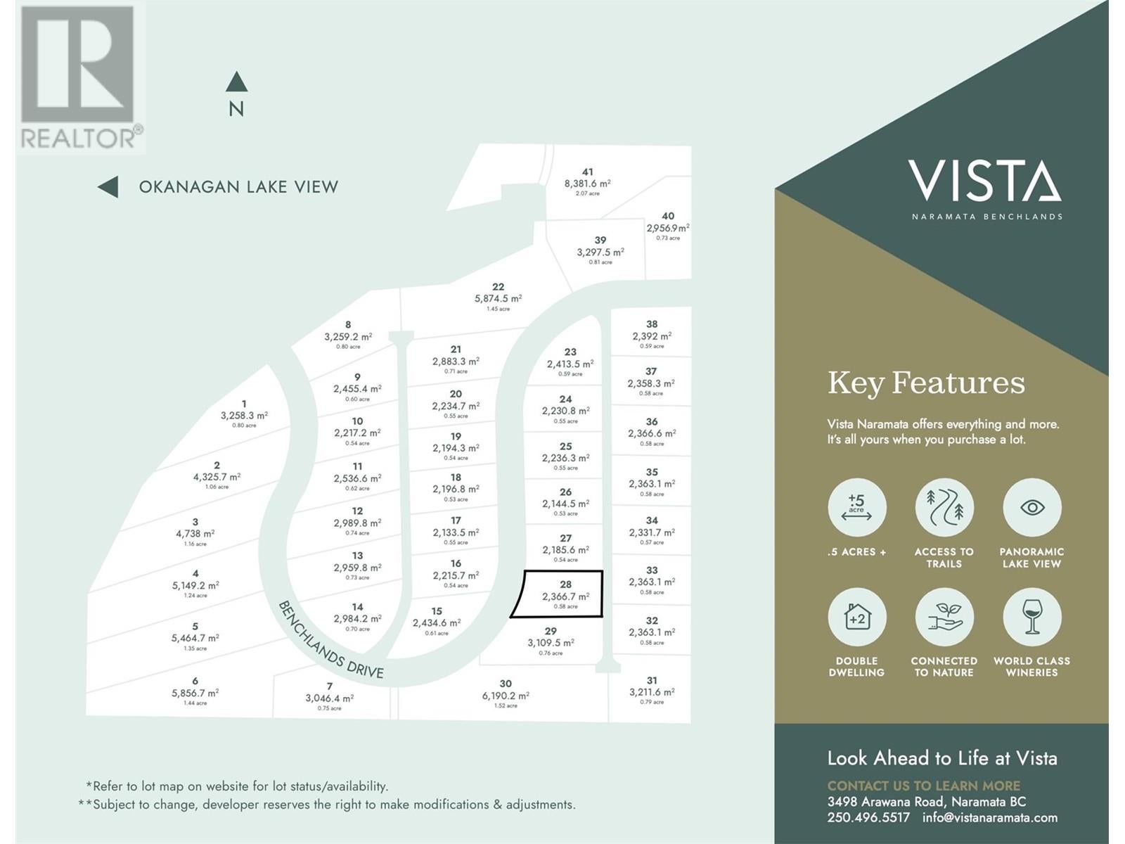 Sweeping Okanagan Lake and Okanagan valley views are found from this 26,000 sq. ft. building lot situated on the Naramata bench. The property is sloped with direct street access at the front of the lot and laneway access at the rear, allowing for flexibility of your design choices and unfettered access for the builder of your choice to construct your vision. All services are available at the lot line including natural gas, electricity, water, sewer, telephone, cable, internet and storm sewer. The zoning bylaw and building scheme allow for both a principal dwelling and a secondary dwelling to be built. This newly developed, upscale neighbourhood is in close proximity to trails, renowned wineries, unspoiled beach, artisan shops and the Village of Naramata. GST has already been paid, so no extra charge! (id:4069)